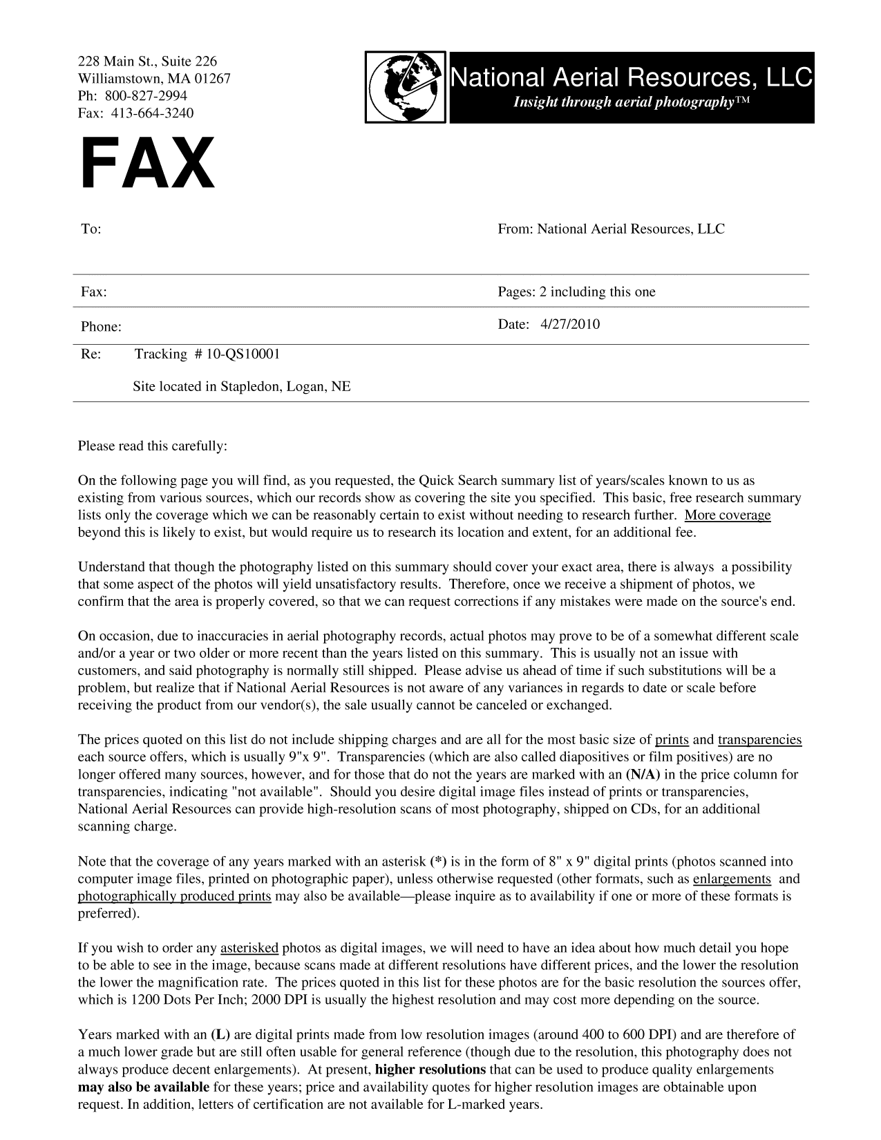 learn more about understanding the information given on an AerialsearchTM Quick Search